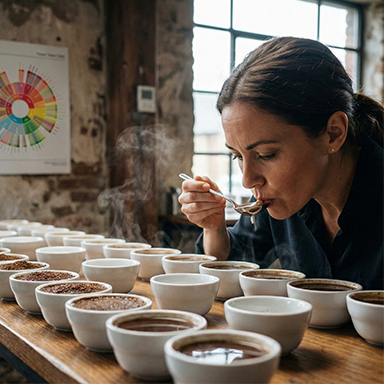 On the palate, the coffee is round and composed. Mild sweetness blends with restrained bitterness, creating a calm, well-ordered flavour profile.